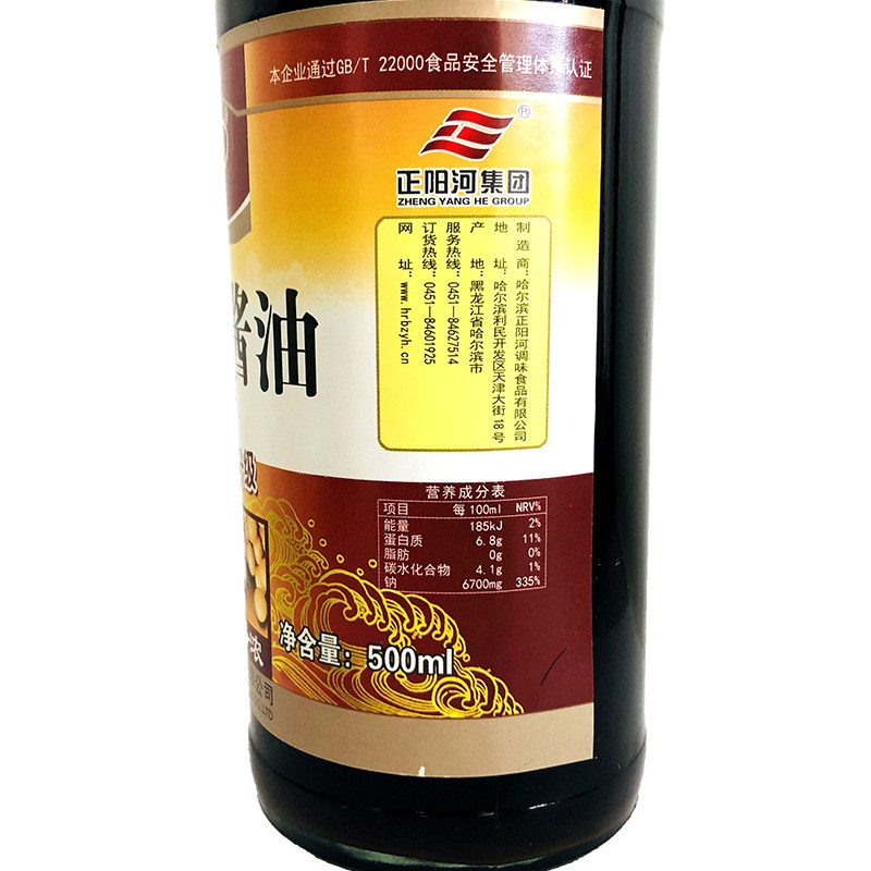 Northeast Harbin Zhengyang River secondary brewed soybean soy sauce old-fashioned salty condiment 500ml*2 bottles