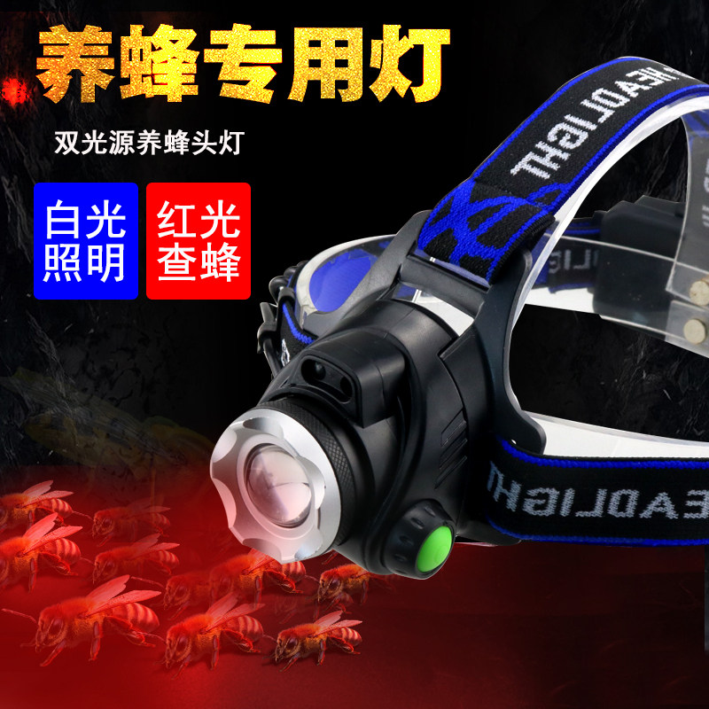 Beekeeping special headlight induction red and white light dual light source zoom strong light rechargeable super bright head-mounted peak check lighting
