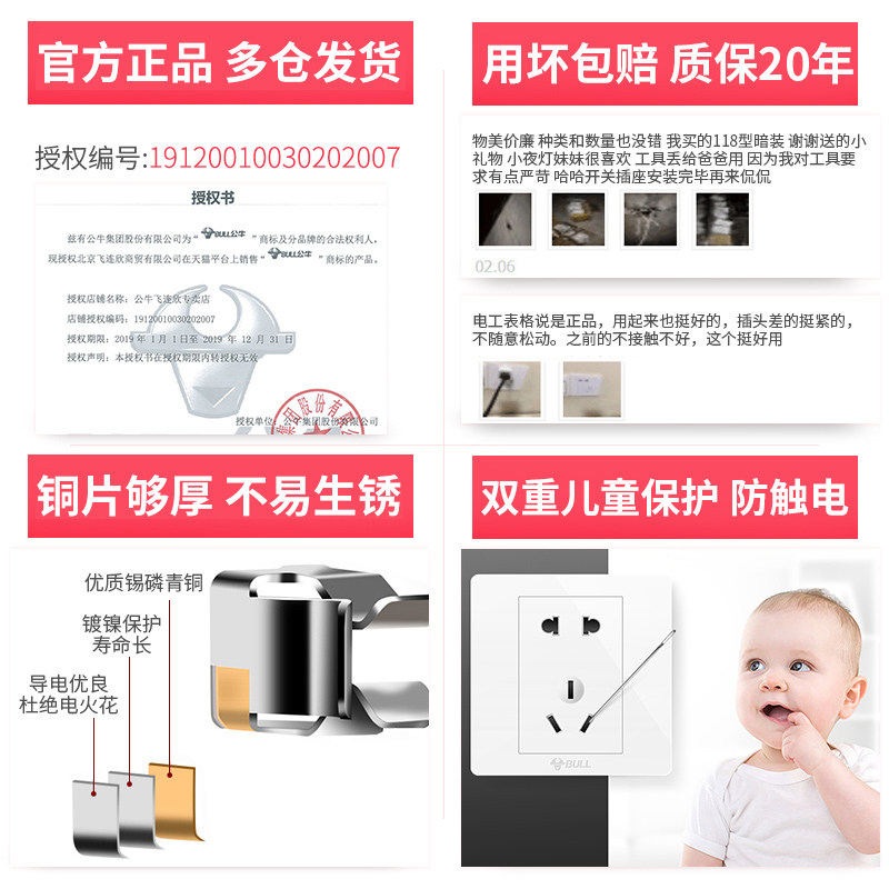 Bull decorative switch socket panel two-open multi-control power supply light switch 86 type midway switch panel G28 white