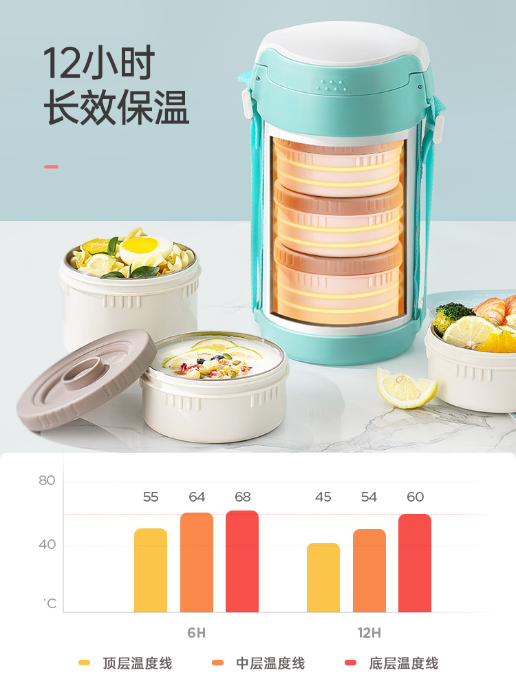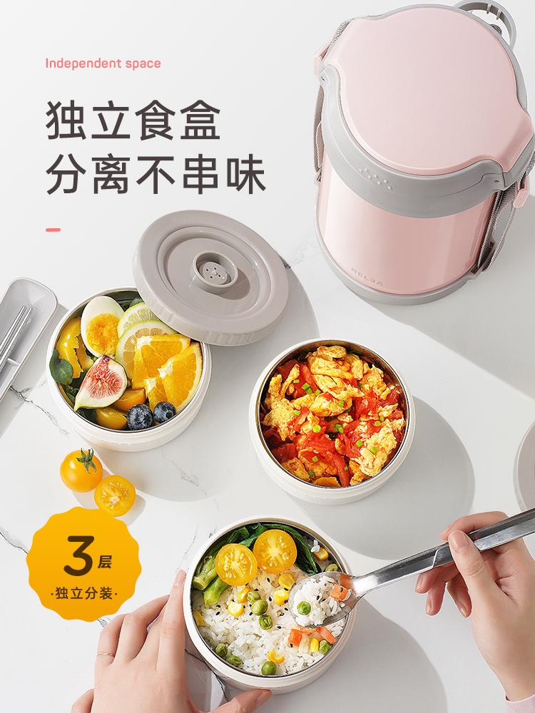 Bio-insulation lunch box 304 stainless steel portable student multi-layer ultra-long insulation barrel office workers 1 person lunch box