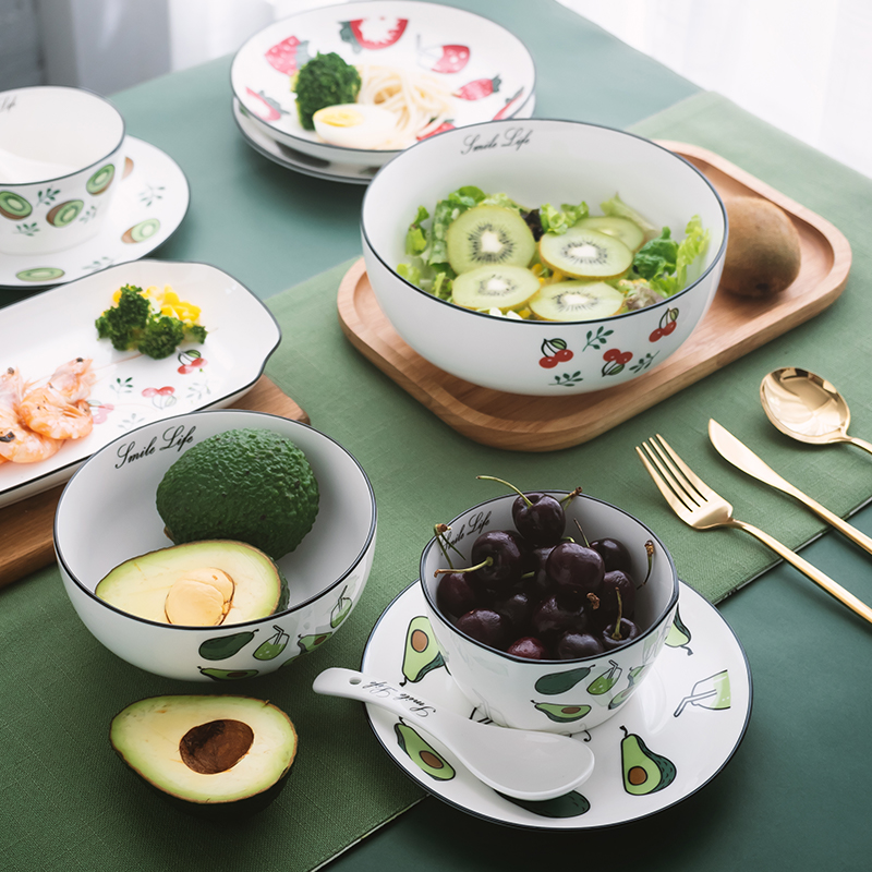 Japanese net red strawberry ceramic tableware household children's eating bowl instant noodle bowl salad bowl creative 8 inch large soup bowl
