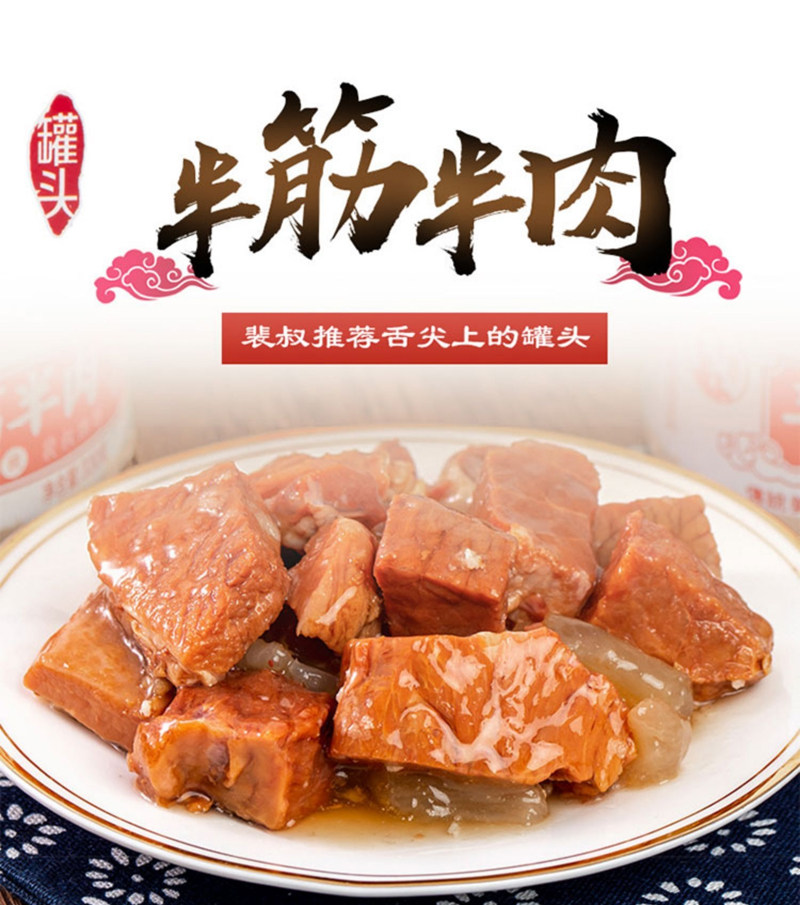 Bamboo Island Half Fascia Half Meat Red Burning Beef Tendon Head Barbrain Canned Five Fragrant Meat Products Outdoor Ready-to-use Convenient Speed Food