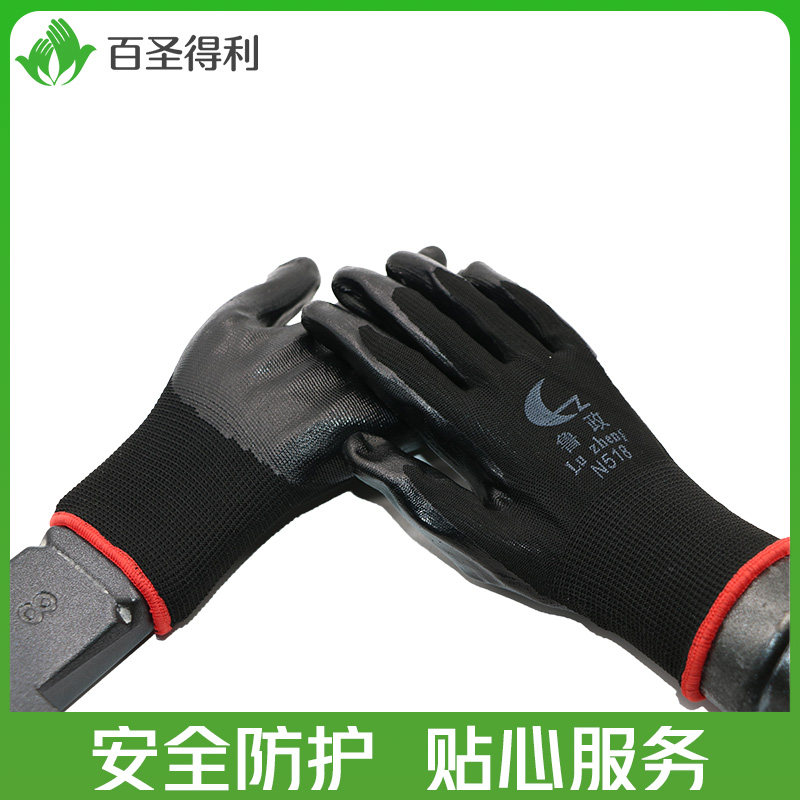 Luzheng black nitrile oil-resistant gloves wear-resistant non-slip breathable tear-resistant environmental protection cut-resistant waterproof suitable for maintenance