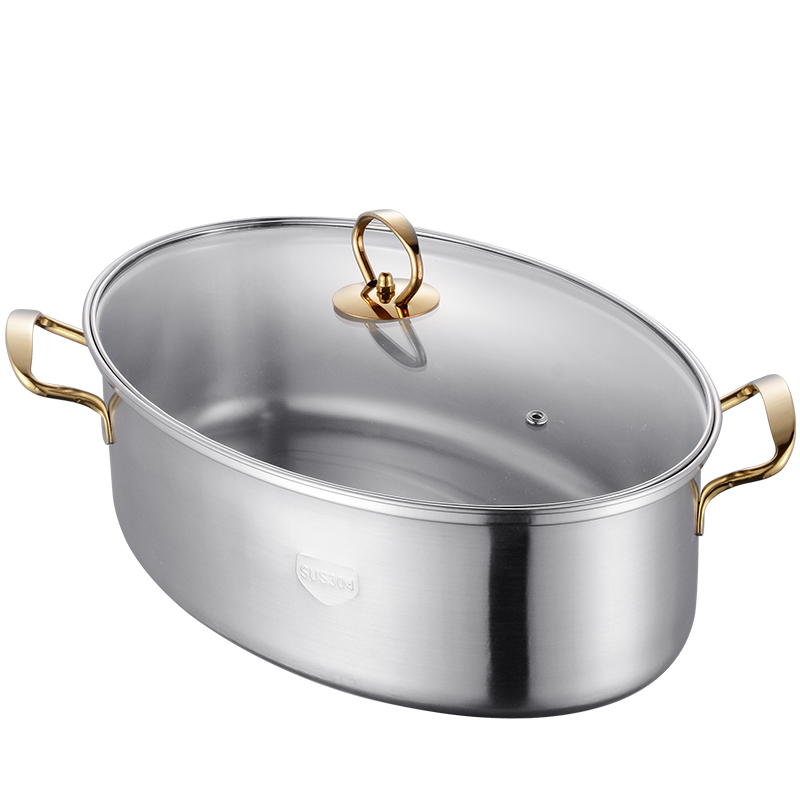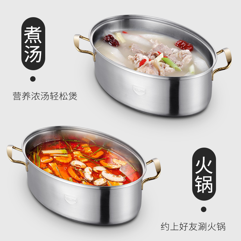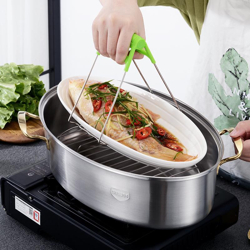 Steamed fish pot large household thickened 304 stainless steel steamed fish artifact 1-layer oval steamer induction cooker seafood cooking pot