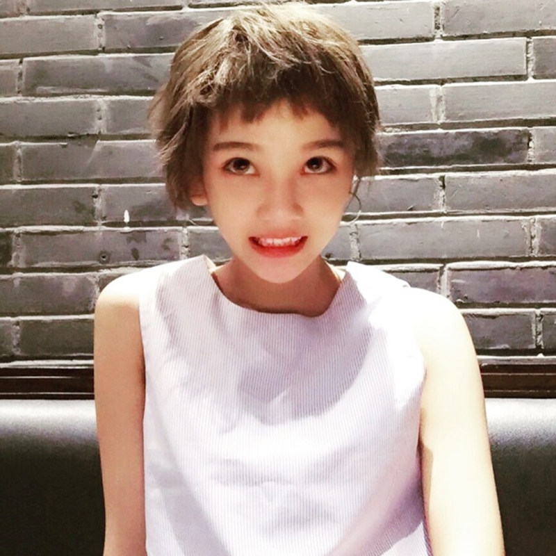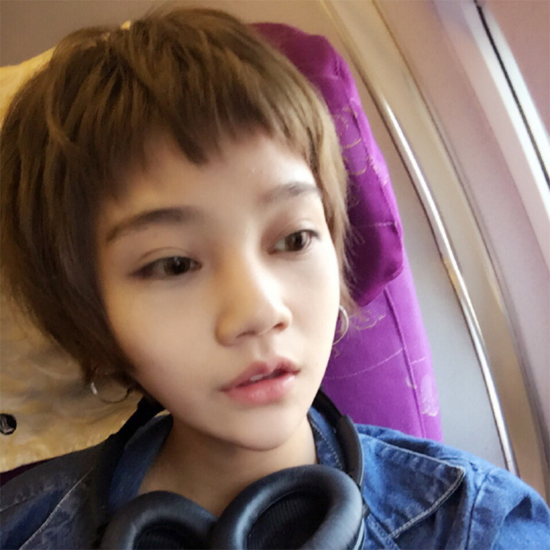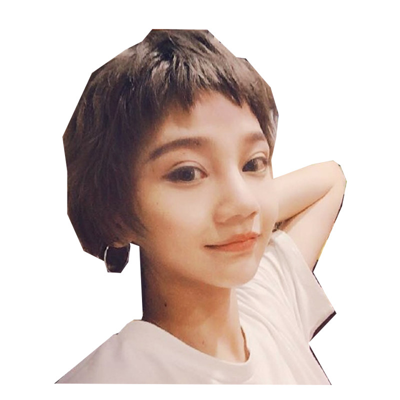 Wig Woman Short Hair Round Face Handsome with a second Yuan Dog nibbling on the sea Japanese Department Short straight hair bobo Head fluffy nature