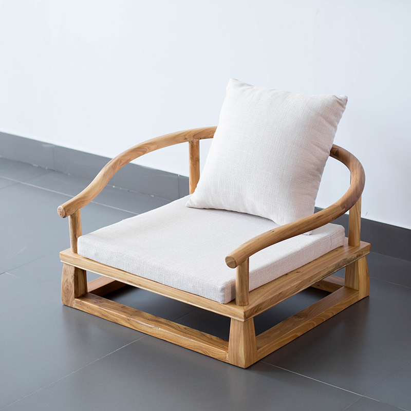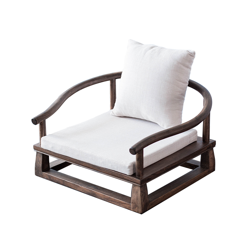 Lepu old elm tatami back chair old elm legless chair Chinese style low circle chair Zen platform solid wood chair