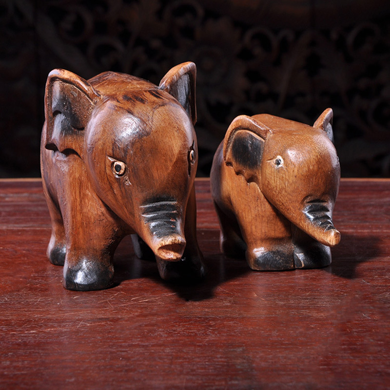 Thailand imported special handicraft gifts Southeast Asian decorative woodcarving cartoon small cute elephant desktop decoration
