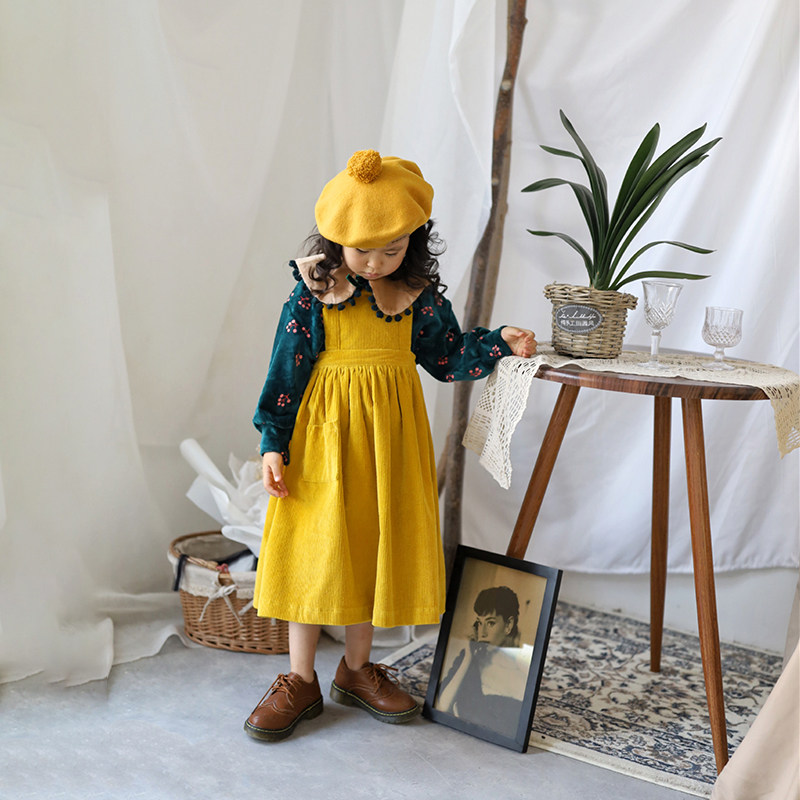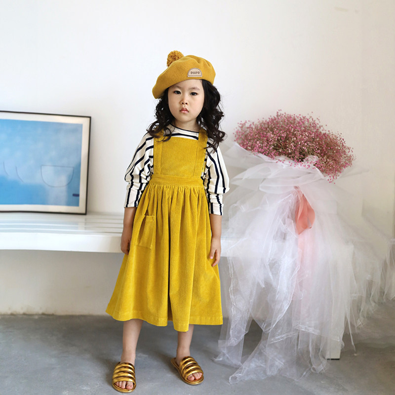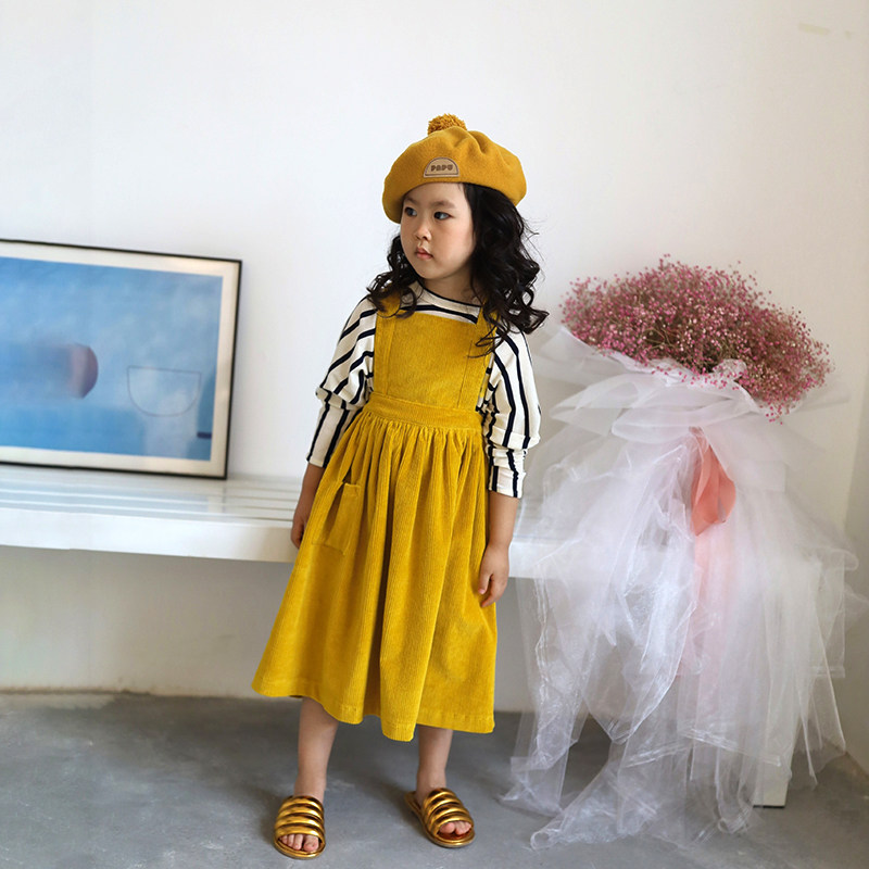 IFKIDS Children's Clothing Spring New Girl Baby Color Great Yellow Core Pocket and Dress