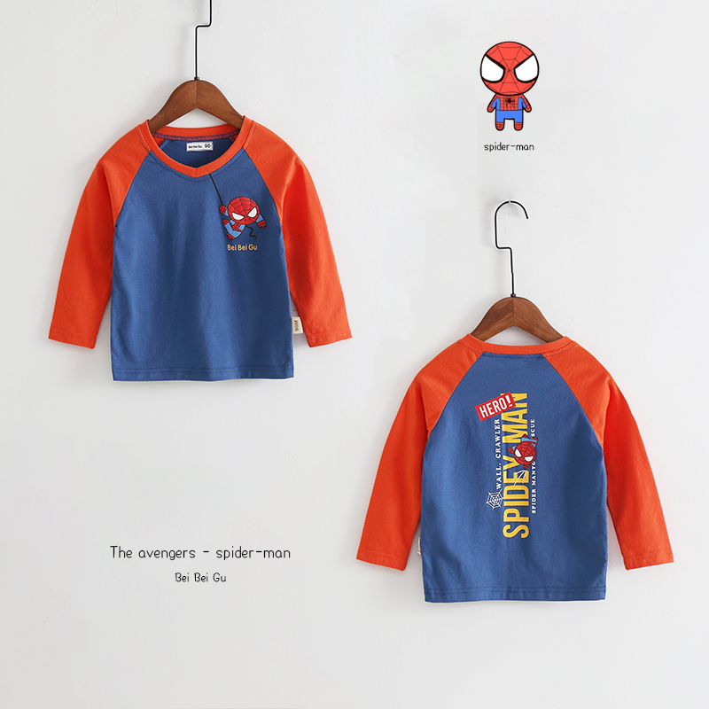 Bebe Valley 2019 Fall New Pure Cotton Printed Cartoon Children Long Sleeve Steel Spider Man Foreign Trade Boy Blouse