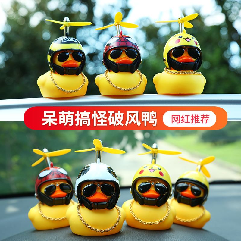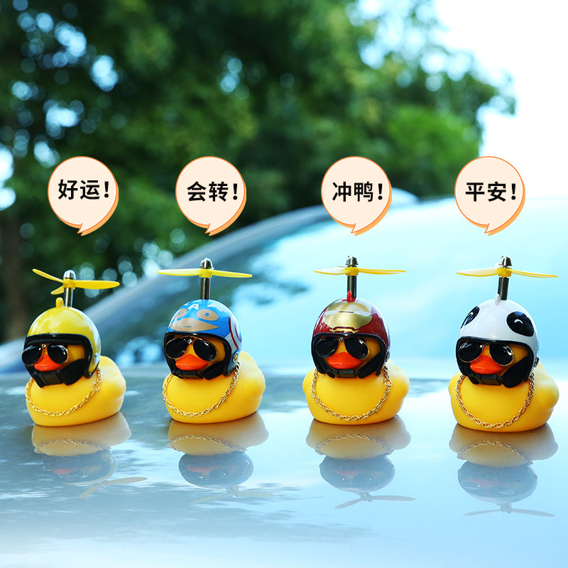 Small yellow duck car in-car Ornament Pendulum car outside car Outside The Wind Duck rear Rear Mirror Safety Helmet Adorned With Ducks
