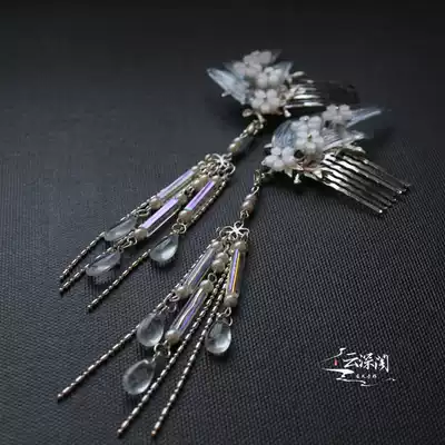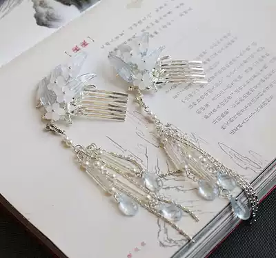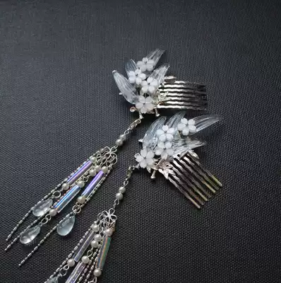 Cloud deep fog light mangosteen original handmade bamboo leaf comb Hanfu tassel hair accessories Ancient style headdress hair accessories set