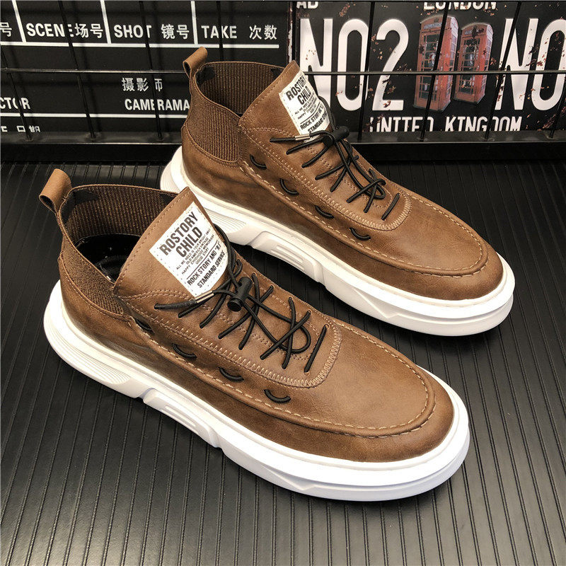 Autumn new thick-soled high-top sneakers trendy men's Korean version fashion all-match comfortable casual shoes fast hand with the same pedal