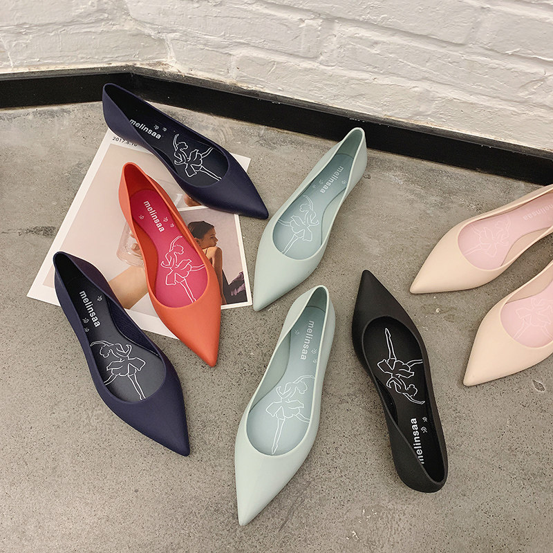 Metropolitan Fashion Rain Shoes Women Light Mouth Tip Jelly Shoes Low Bunch Waterproof Working Single Shoes Fisherman Shoes Little Prince