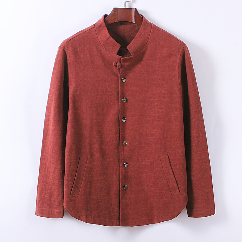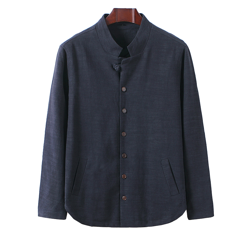 Spring and autumn style men's short and thin coat with enlarged code loose cotton linen jacket Chinese wind linen long sleeve Chinese jacket