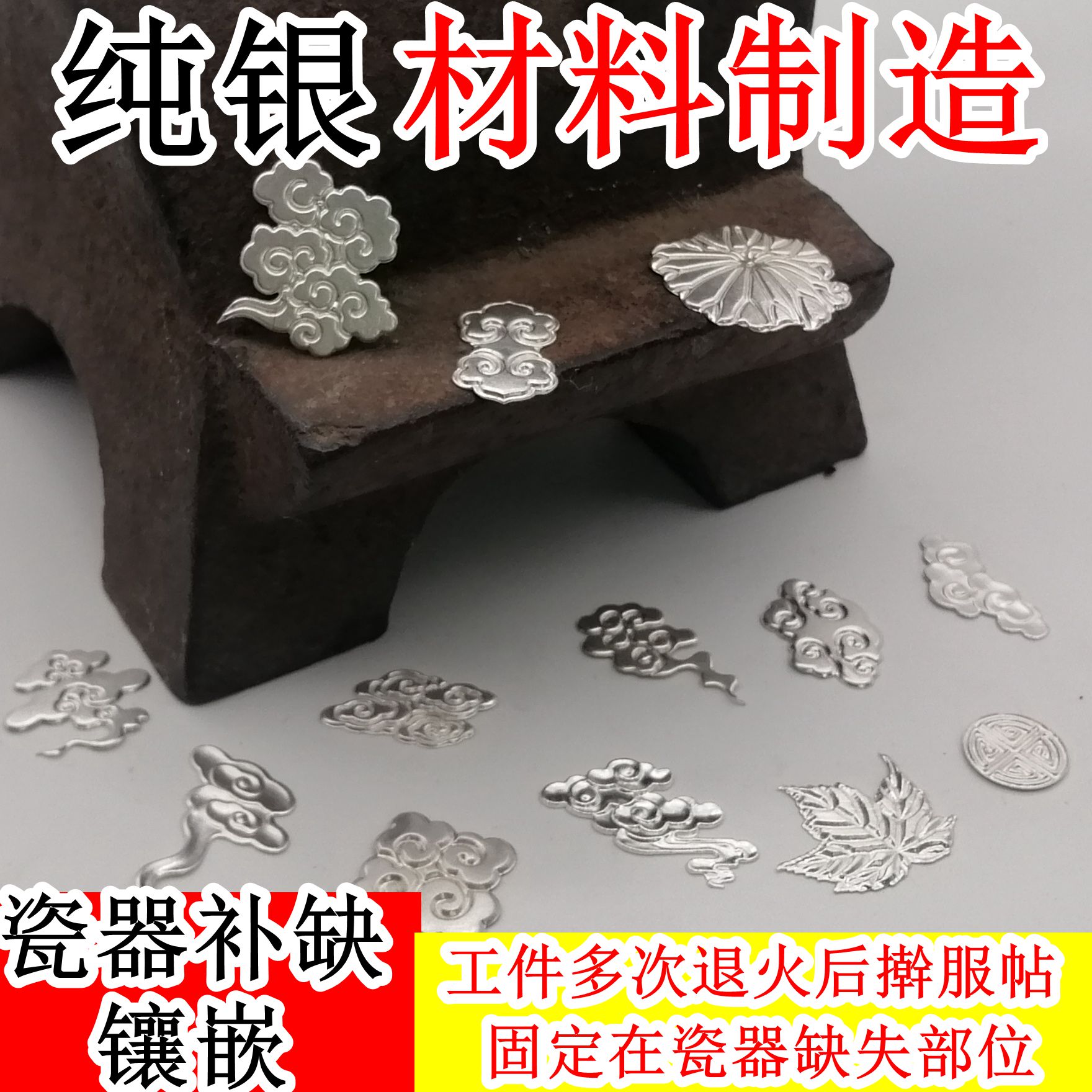 Porcelain Repair Tool Porcelain Repair material Ileum Silver Flower Pure Silver curium Nail Wrapping with Inlaid Purple Sand Pot porcelain nail