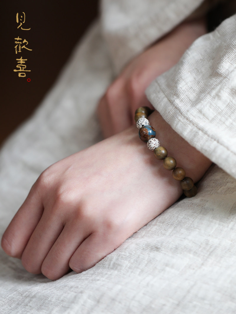 See Joy (Lake light) green sandalwood Buddha bead bracelet sandalwood star moon Bodhi bracelet female retro ethnic style bracelet