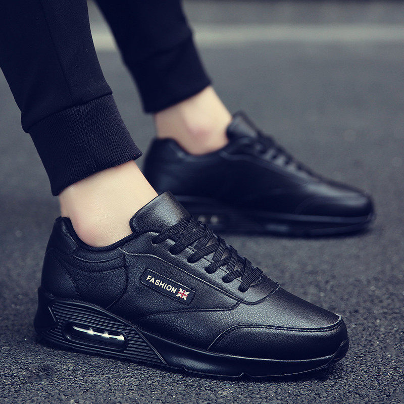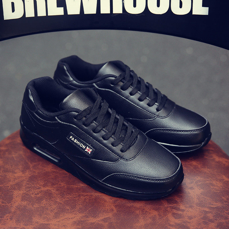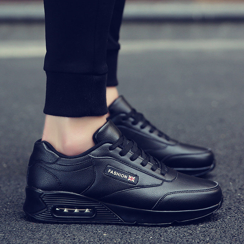 37 38 small code chef shoes men's anti-slip waterproof kitchen shoes pure black sport leather shoes all black to work shoes 6-Taobao