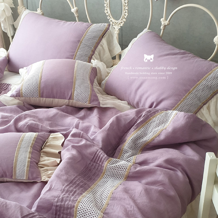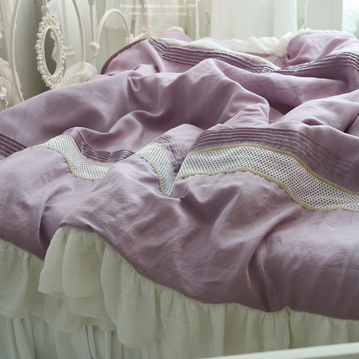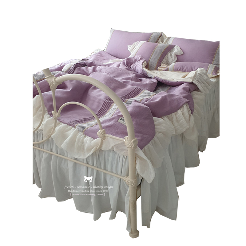 Artisan customize ANNAMONG Princess lace purple pure cotton quilt cover Three sets of ultra delicate supple softness