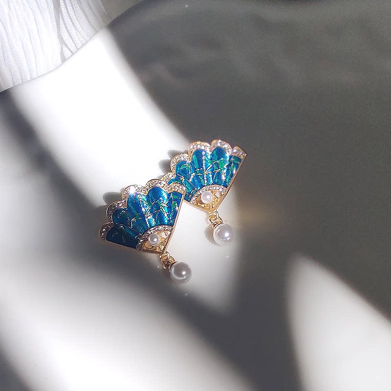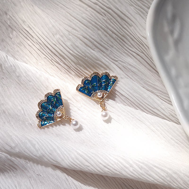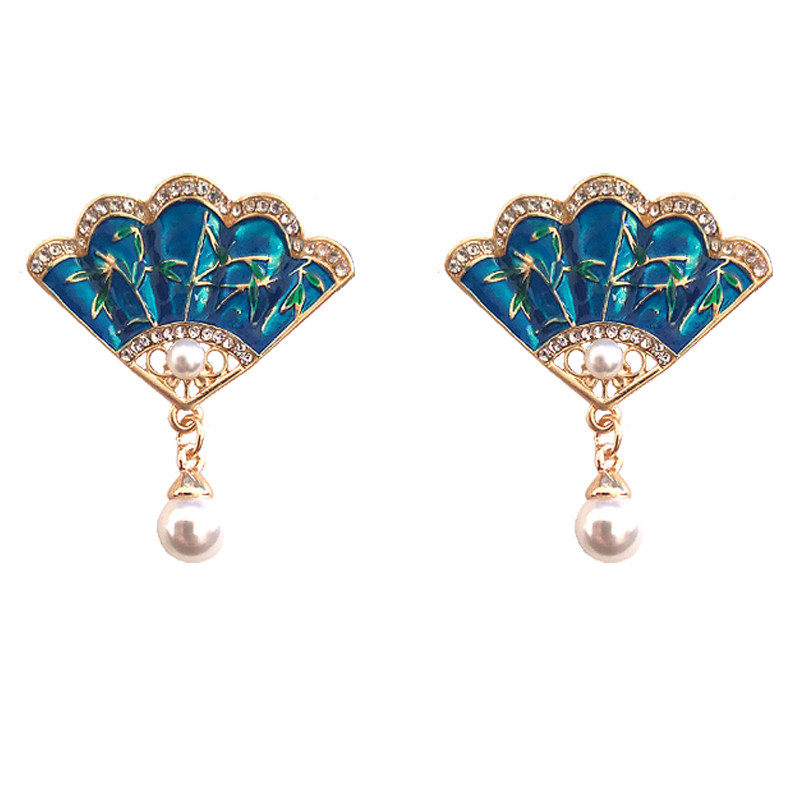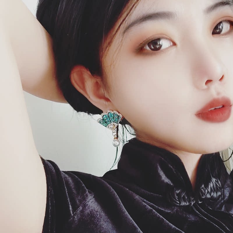 Retro Earrings China Fan Shaped Pearl Earrings Super Fairy national style Classical Temperament Ear Clip without earbuds