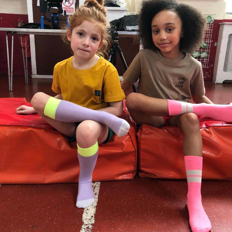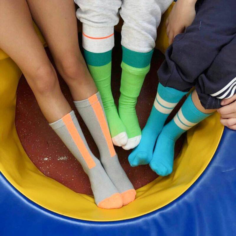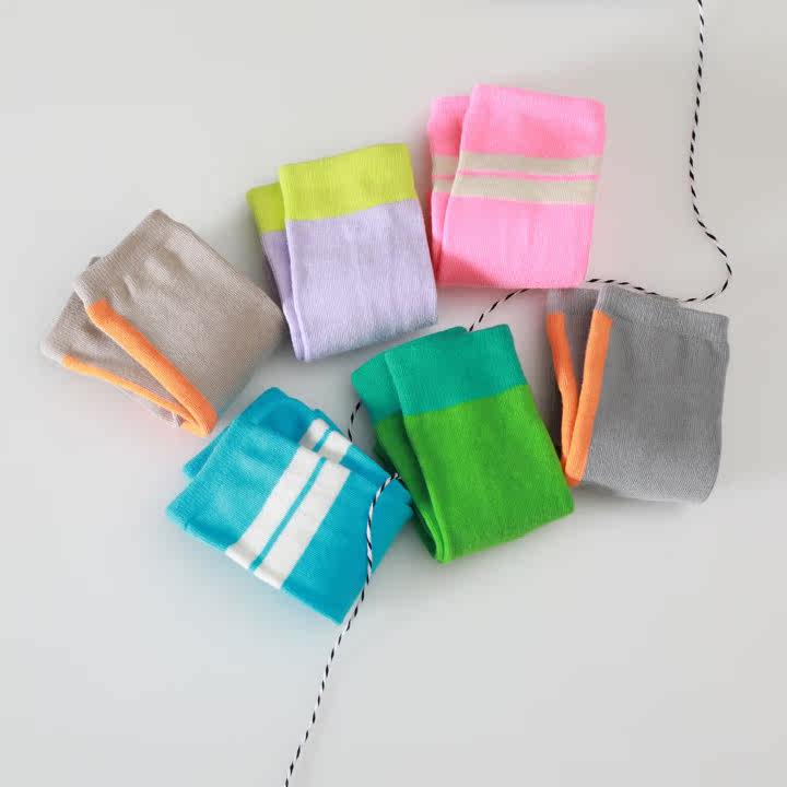 Island Italy Korean autumn children's boys and girls fluorescent color middle tube socks candy color color matching cotton socks high tube socks