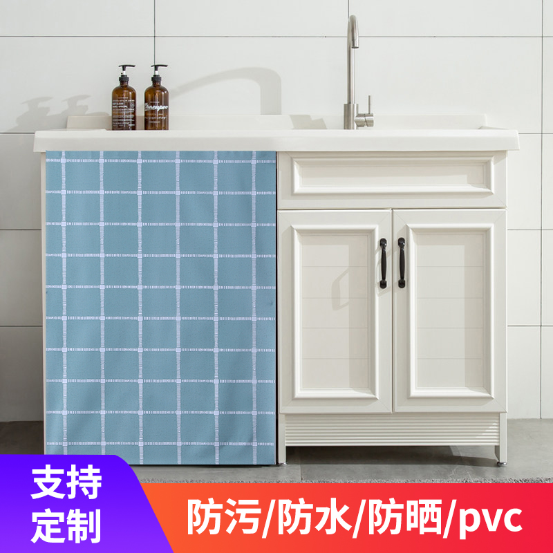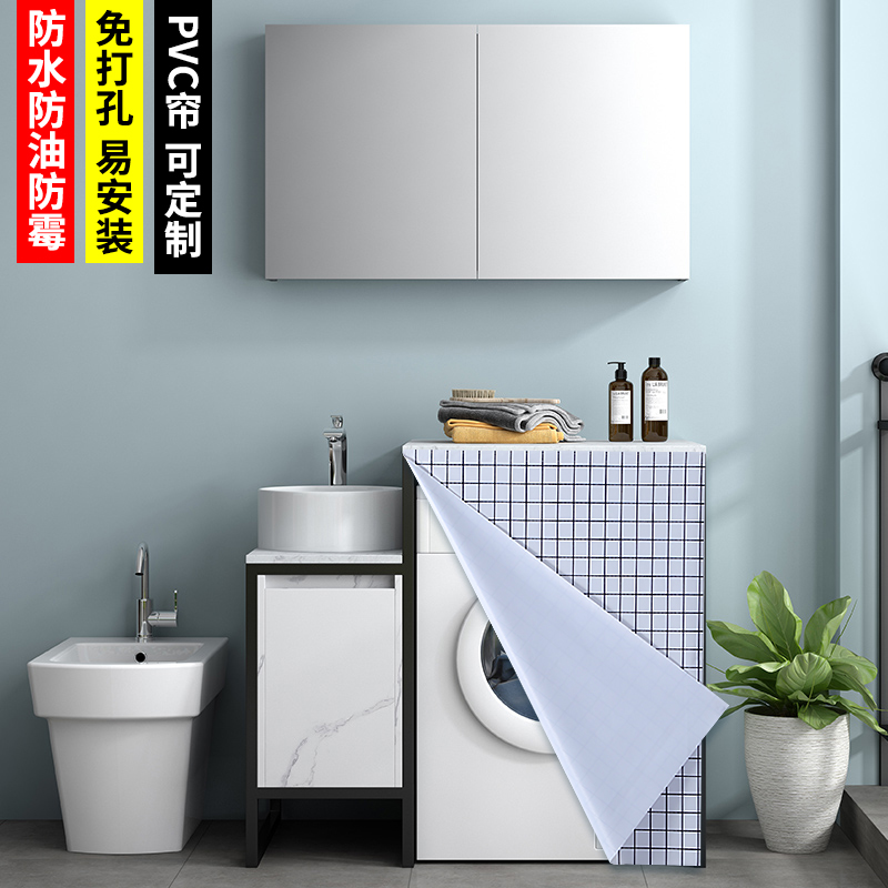 PVC Water Resistance Oil-proof Overall Cabinet Cover Curtain Self-adhesive Dust-free Punch Curtain Household Washing Machine Kitchen Curtain