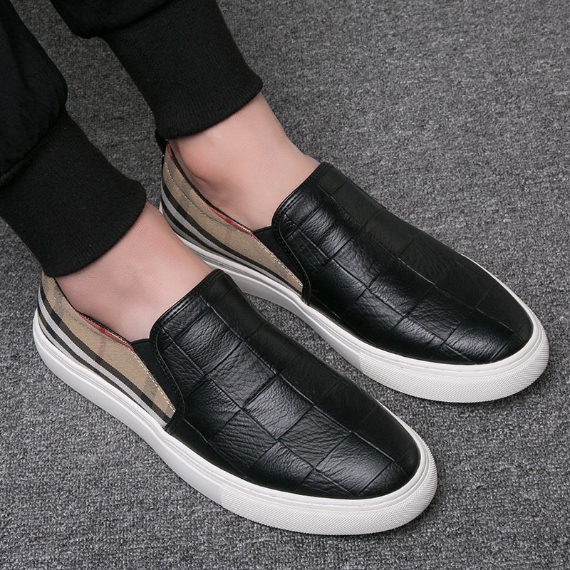 Hong Kong Tide Cards New Men's Shoes Casual Shoes Checkered Shoes Korean Version Wave Shoes Interior Heightening Lefu Shoes Genuine Leather Slippers Shoes