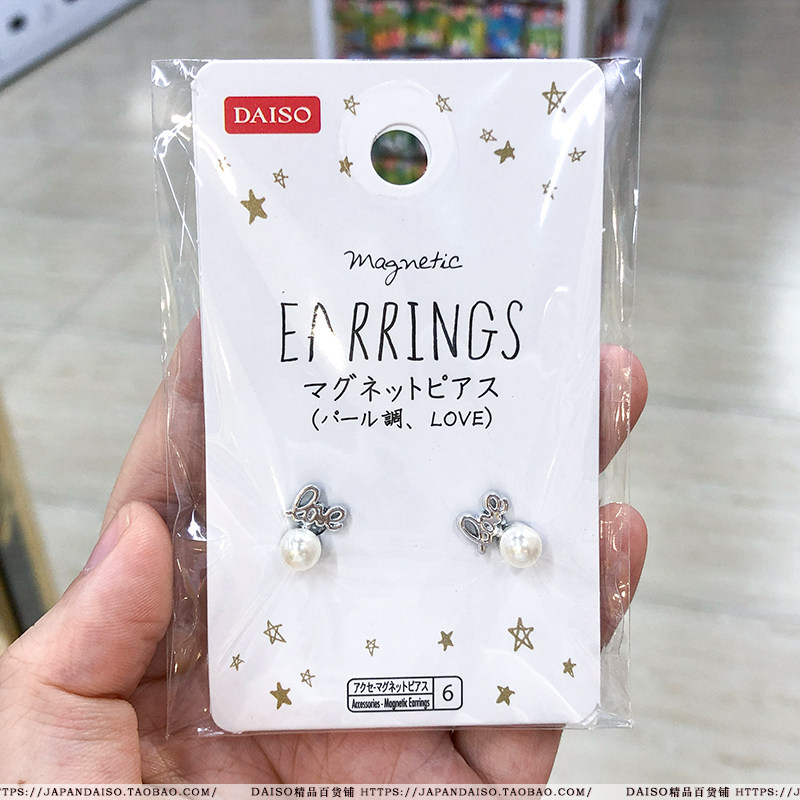 Japanese Great Innovation DAISO Temperament Brief English Pearl Magnet Ear Needle Without Pain Without Ear Clip Earrings