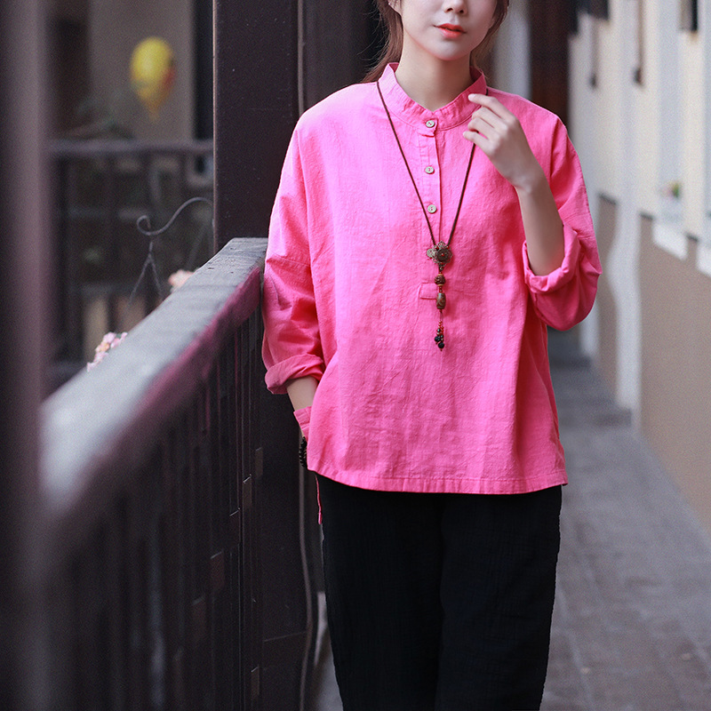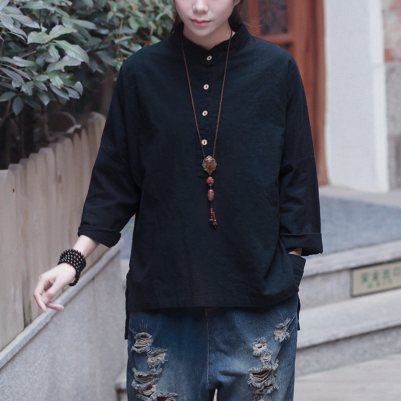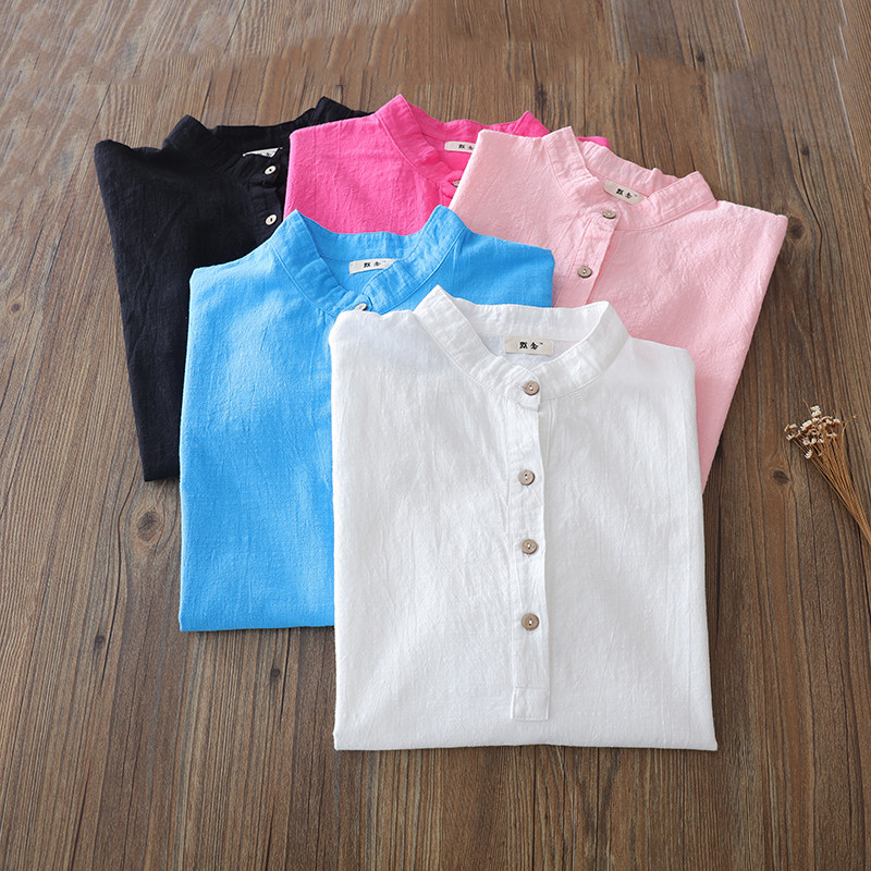 New spring original cotton and linen Women's Literary Women's loose collar cotton shirt Women's inner shirt