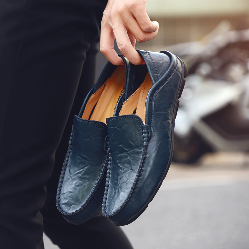 Hong Kong fashion brand 2022 new casual beanie shoes men's genuine leather summer trend men breathable one foot leather shoes