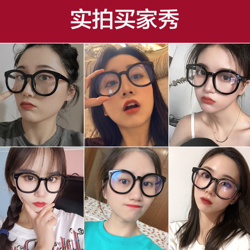 GM black frame glasses frame female color flat frame flat-frame glasses anti-radiation blue round face net red mode can be equipped with near-view glasses
