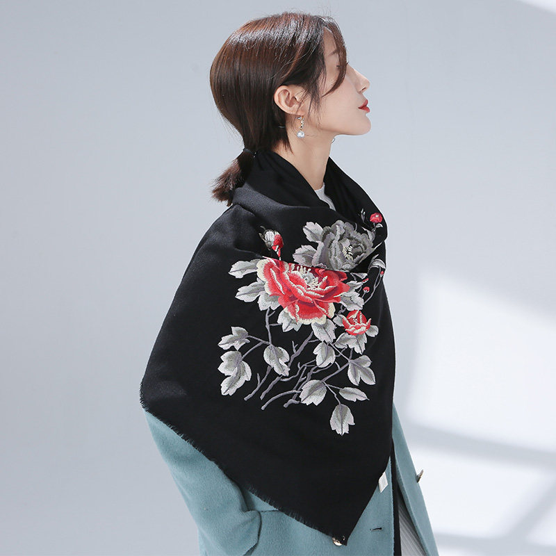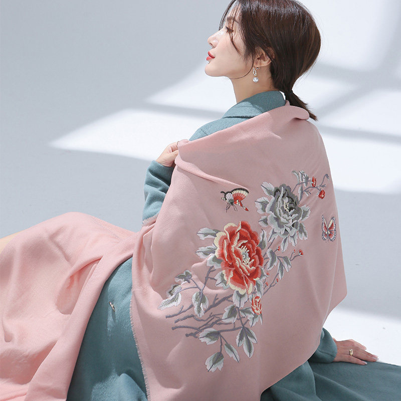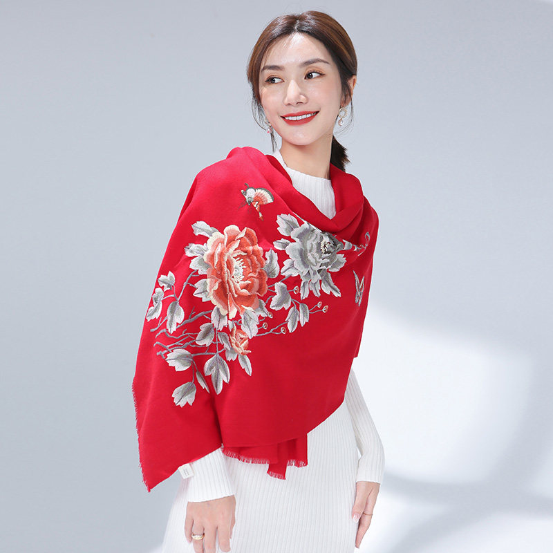 Shanghai Stories Official Flagship Store Red Pure Wool Scarves Women China Red Autumn Winter New Products Oversized Shawl Dual-use