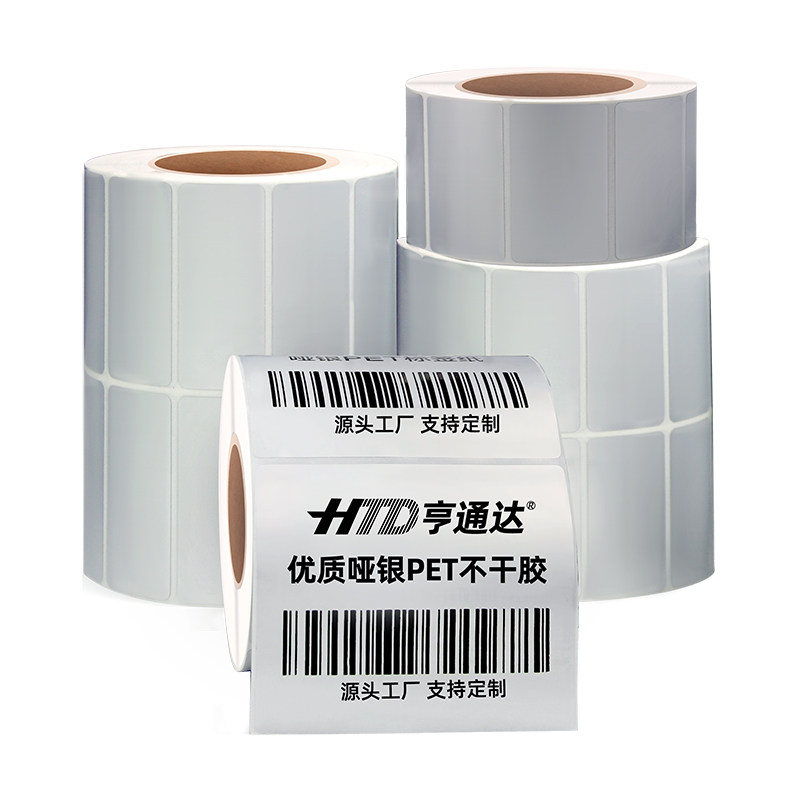 Hengtongda PET Asia silver label paper sticker 100 80 70 60 50 40 30 20 dumb silver paper barcode printing empty