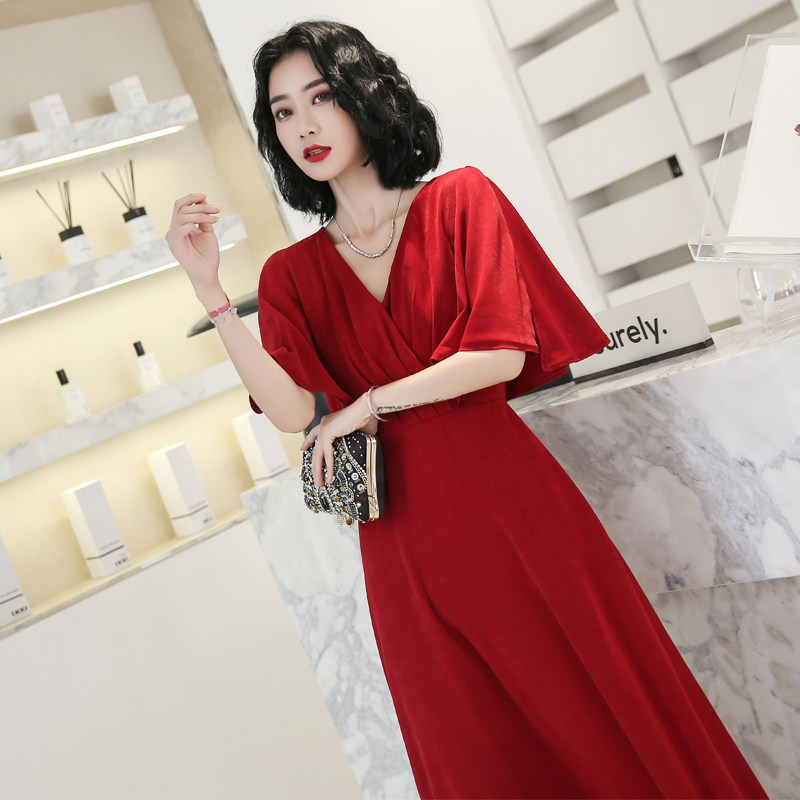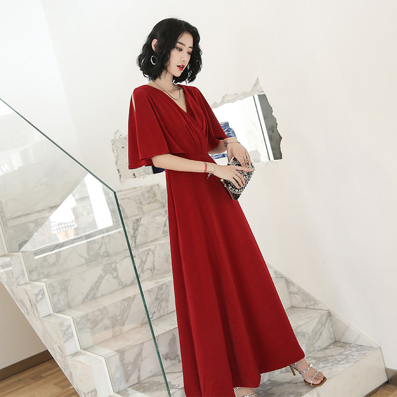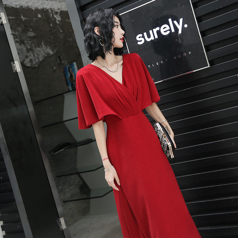 Bride wedding toast dress female 2022 new red long version V-neck temperament can usually wear banquet evening dress skirt