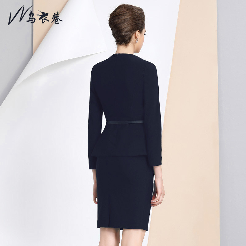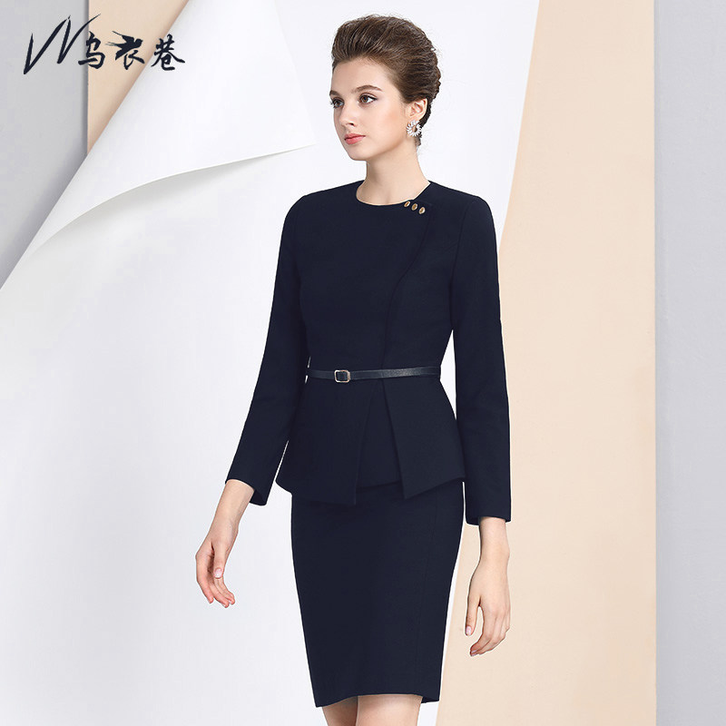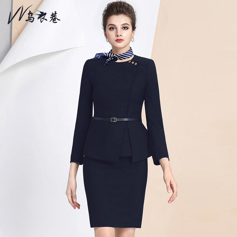 Dark blue suit pants (with fine belt) dark blue cover dress (with fine belt) dark blue blouse long pants west dress (with fine belt)