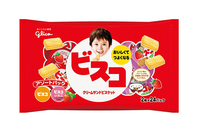 Japan's Glico glico strawberry cream combination baby children's snack lactic acid bacteria biscuits 2 * 24 packets