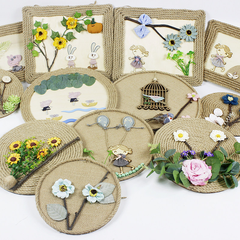 Kindergarten classroom decoration ring creation material handmade work background hemp rope board hanging decoration corridor wall stickers