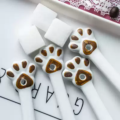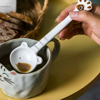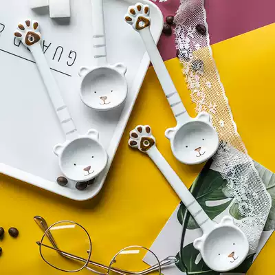 Cute bear dessert spoon ceramic spoon creative mixing spoon cute home eating coffee spoon long handle meal spoon