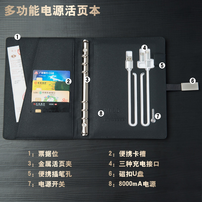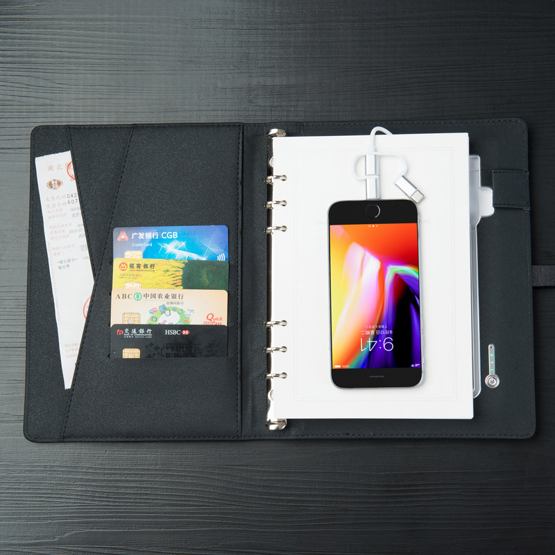 Customized business multi-function notebook with charging treasure creative retro U disk mobile power notebook exquisite and simple notepad A5 loose-leaf book for customers Practical souvenirs can print LOGO