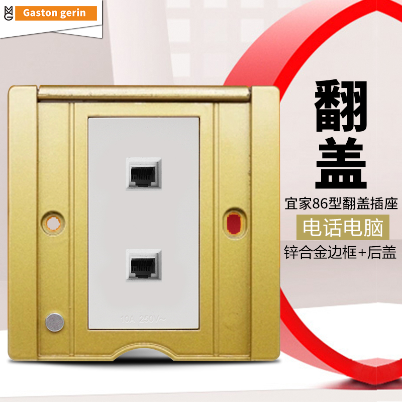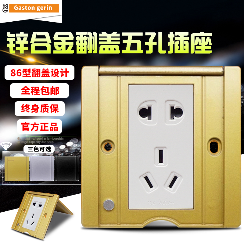 Meranzhan Champagne Gold 86 Type 5-hole ground plug flip-type full copper waterproof concealed plug-in phone