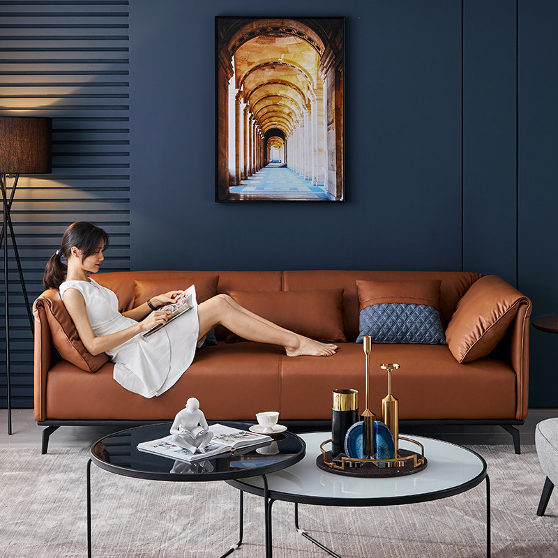 (Limited orphan) Italian light luxury leather sofa modern minimalist living room first layer cowhide Q