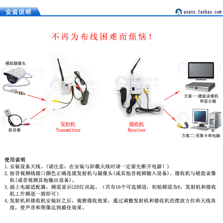 Aisi wireless image transmission 1 2G remote HD monitoring transmission equipment Video wireless transmitter receiver Patong