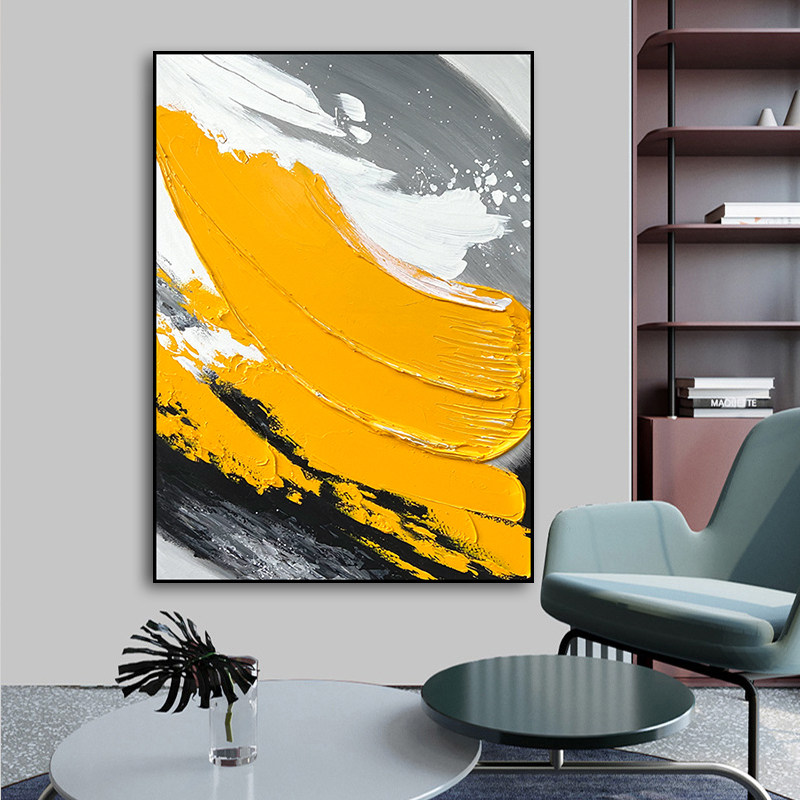 Hand-painted abstract oil painting three-dimensional dark yellow block decorative painting modern minimalist texture porch aisle background wall hanging painting