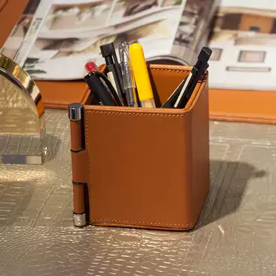 EMAES leather metal pen holder storage tube rack model room Nordic living room desktop mobile phone remote control storage box