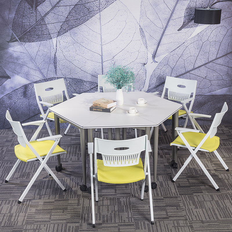 Trapezoidal conference table simple combination hexagonal table student triangle table school classroom desks and chairs training table - Taobao
