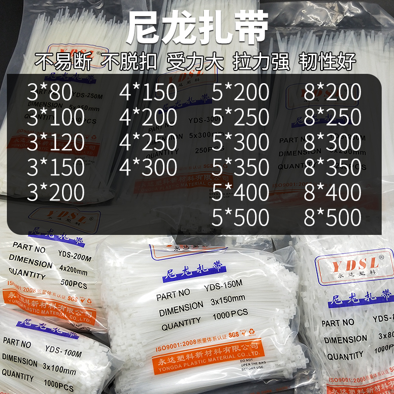 100 self-locking nylon cable ties 3 4 5 8*200 150 250 300 500 plastic large buckle strong