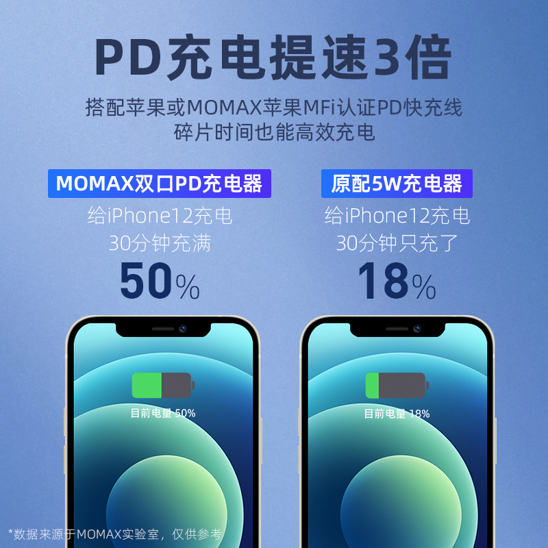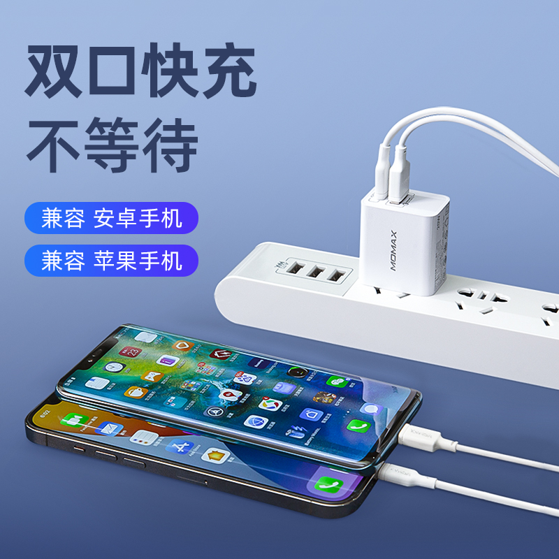 MOMAX Morimi PD20W Dual-port charger applies Apple 13 charging head iPhone13promax Quick charge 11xr portable mini flash charging plug iPad