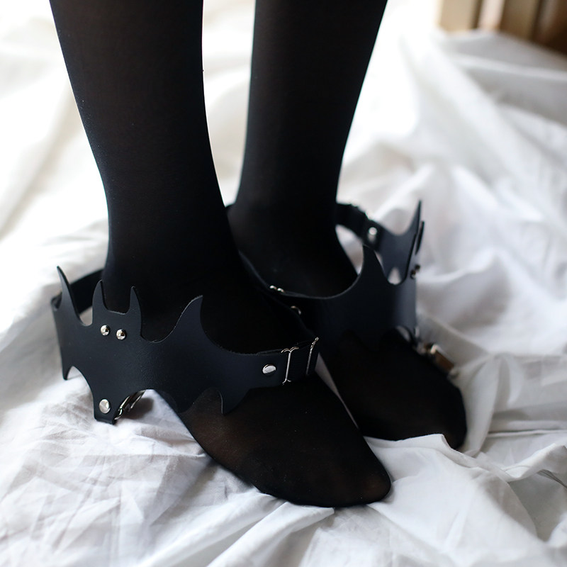 2 pieces bat wing leather garter with leg ring sock clip