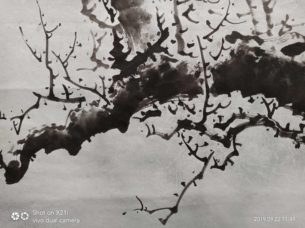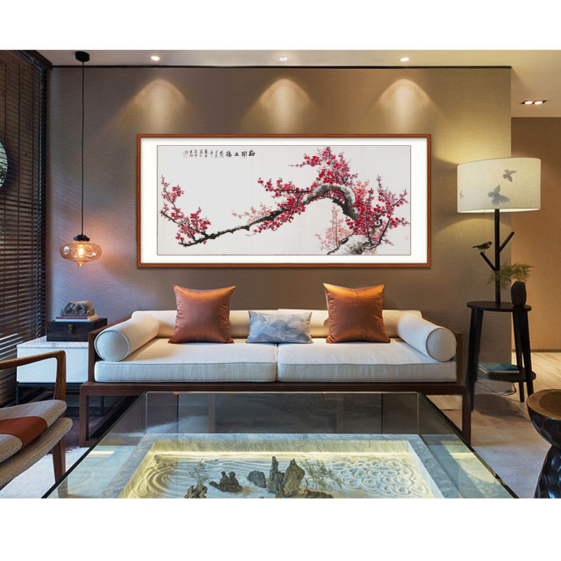Red plum newspaper spring plum blossom calligraphy and painting Chinese painting Pure hand-painted freehand freehand flowers and birds painting style Water painting Hanging painting Living room decoration hanging painting