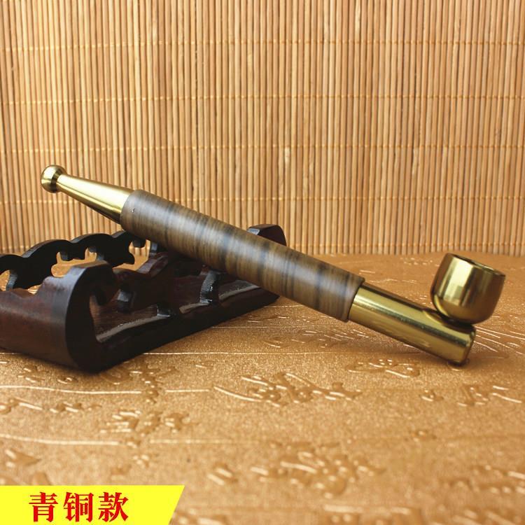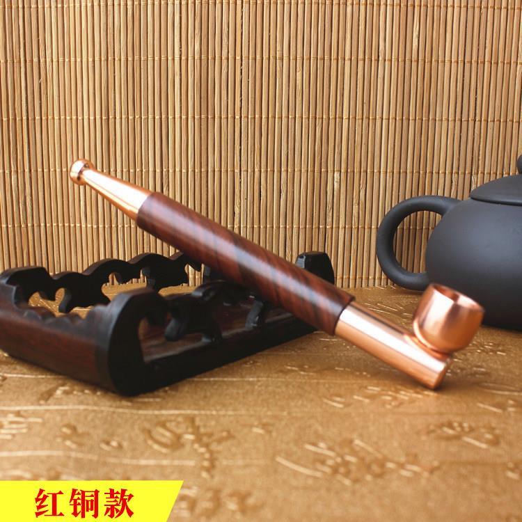 Purifier solid wood dry tobacco pipe tobacco bag old-fashioned copper mouth thread soil tobacco Chinese tobacco leaf cigarette case portable traditional trumpet