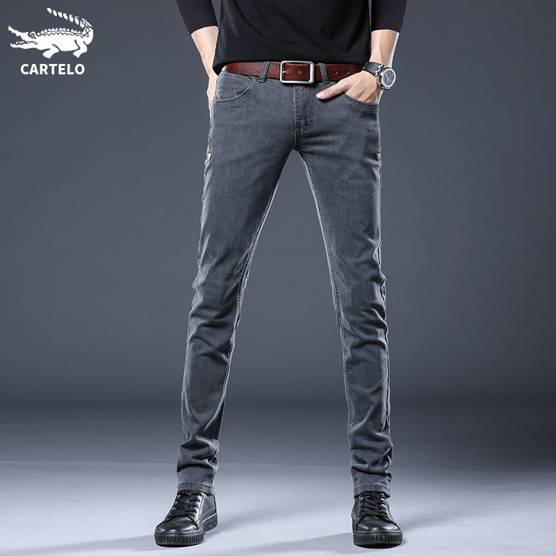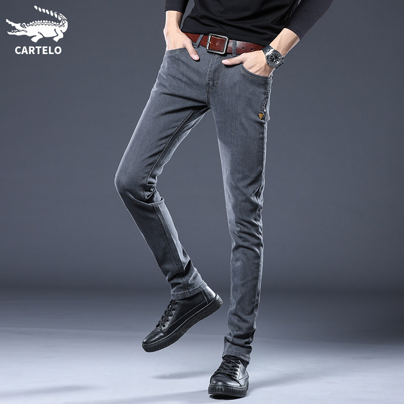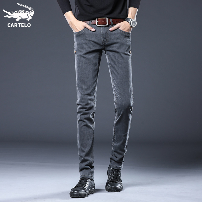 Crocodile elastic jeans Men's summer loose Korean version trendy tide cards slim fit small feet long pants male pants